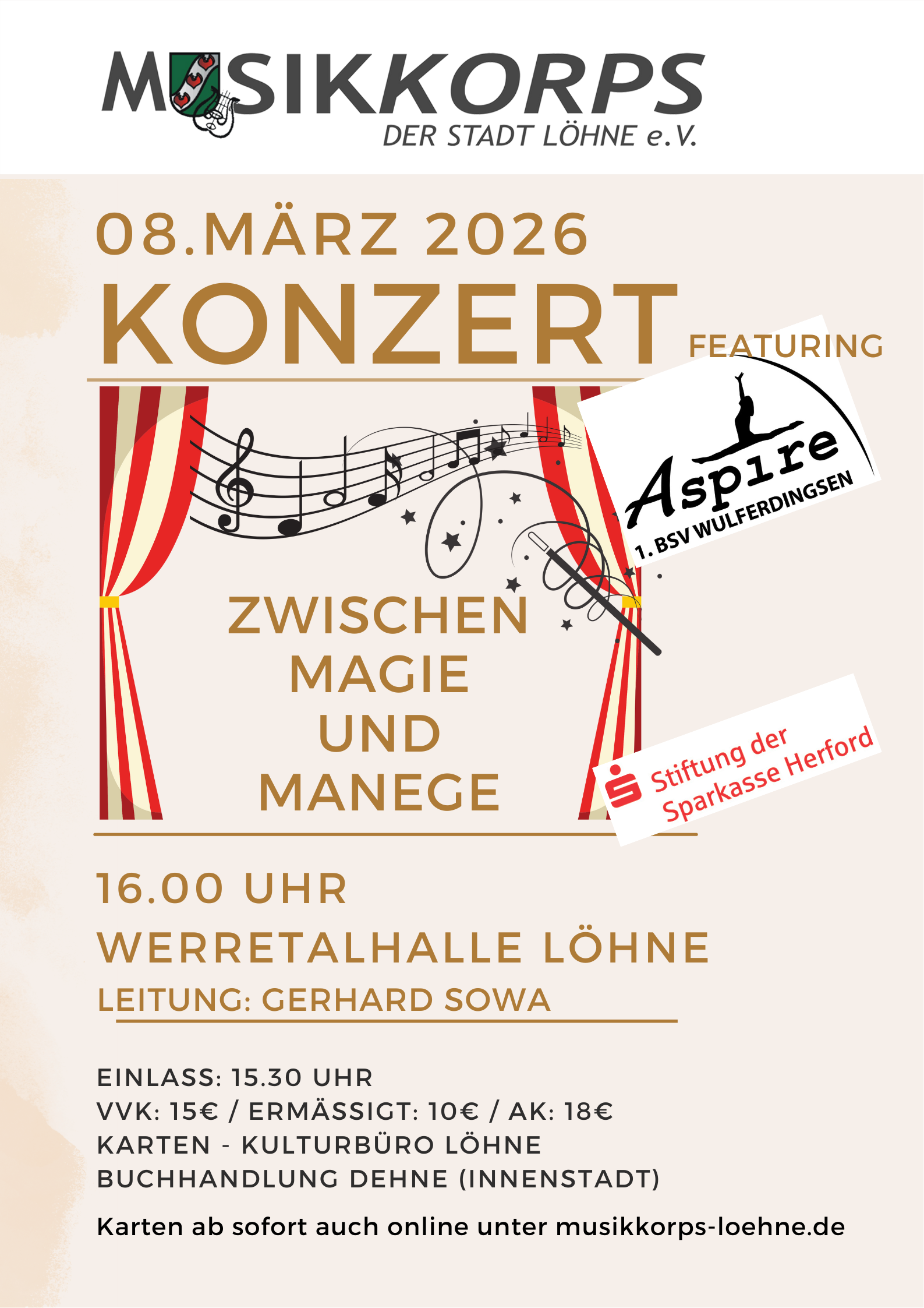 Das Musikkorps der Stadt Löhne e.V. spielt als Blasorchester ein breites Repertoire, von Märschen über Filmmusik bis hin zu Rock- und Pop-Arrangements.